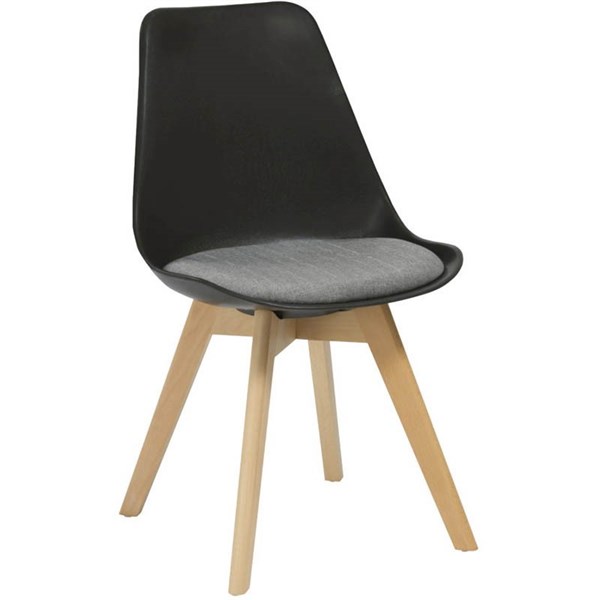 RAPIDLINE VIRGO BREAK OUT CHAIR OAK COLOURED TIMBER LEG WITH POLYPROPYLENE SHELL SEAT BLACK/GREY