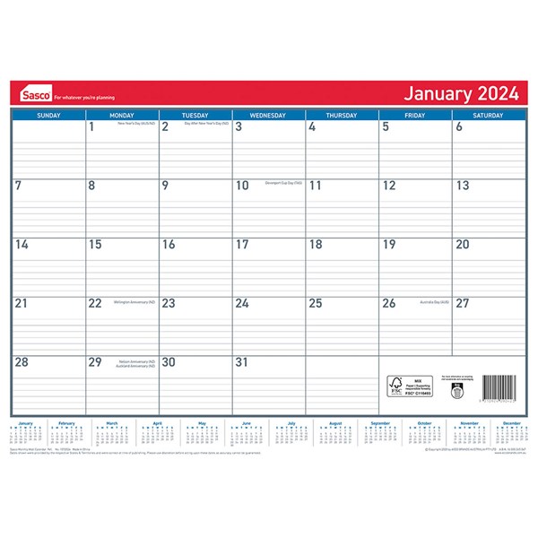 SASCO 2026 WALL CALENDAR MONTH TO VIEW 530 X 395MM