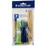 - The essential school kit contains: 1 X 12 pack Staedtler wood free coloured pencils; 6 x Staedtler natural HB graphite pencils; 2 x Staedtler large school erasers; 1 x Staedtler slim double hole tub sharpener