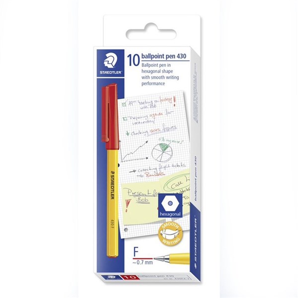 STAEDTLER STICK 430 BALLPOINT PENS FINE RED BOX 10