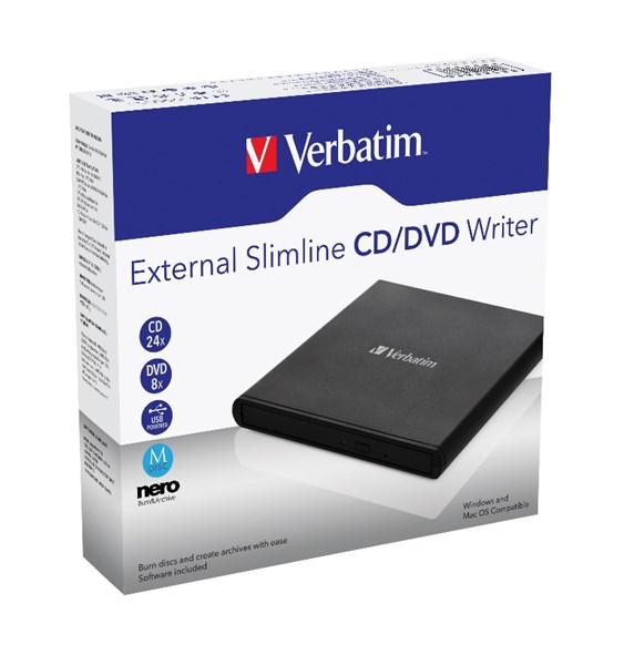 Verbatim Slimline USB DVD CD Writer for Laptops