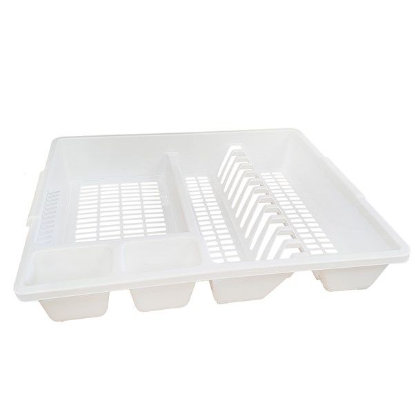 Keep your countertops tidy and your dishes dry with the Connoisseur Plastic Dish Drainer in classic white. This thoughtfully designed drainer features ample space for plates, bowls, and glasses, with a built-in cutlery holder to keep everything organized. Its durable plastic construction is easy to clean and built to last, making it a practical addition to any kitchen. Whether you're hand-washing your favorite cookware or just need a spot to air-dry everyday items, this drainer is up for the task. It's a simple, effective solution that the Localworks team appreciates for its straightforward functionality and long-term value.